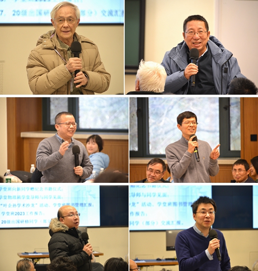 随后,到会的学堂导师分别发言对学堂班的新老同学进行了语重心长的鼓励,特别希望新同学们在立下科学志向的同时,下功夫打好数学物理基础,注重锻炼强健体魄,开阔科学视野。会上负责“叶企孙学术沙龙”的同学宋明卓、负责学堂班图书室管理工作同学莫烨佳做了工作汇报。李师群老师扼要总结了学堂班2023年的主要工作。