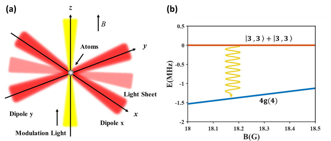 最近,物理系研究组提出了通过调制来实现Feshbach共振的一种机制,并利用光强调制的方式在冷原子系统中对该机制进行了观测。其原理是通过调制自由原子态和分子态之间的能量差来耦合两个碰撞态。在单频调制下,当调制频率和两个碰撞态之间的能量差接近时,共振就会产生。此时,原子的散射性质也会相应改变,原子间散射长度与调制参数的关系和磁Feshbach共振下原子间散射长度与磁场大小的关系具有类似的形式。如果用多个频率进行调制,该机制还可以利用量子干涉效应来抑制非弹性原子损失。