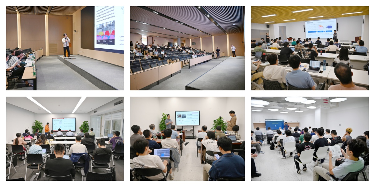 本届博论设立7个平行分会场,包括国家奖学金答辩会场,3个凝聚态物理分会场,2个原子分子与光物理分会场,以及粒子物理、核物理和天体物理分会场。论坛采用线上线下同步开展的形式,鼓励师生跨场次听取报告,实现跨领域对话。196位不同年级、不同研究方向的研究生依次登台,呈现了一场高质量、多维度的学术盛宴。每场报告后设置互动问答环节,不仅深化了听众对前沿课题的理解,也有效锻炼了学术思辨能力。评审教师从学术价值、表达水平等多维度进行评分,并将结果纳入国家奖学金评定体系。经全体参会博士生投票,黄泽蔚、吴思捷、王徐升三位同学荣获“人气报告奖”。