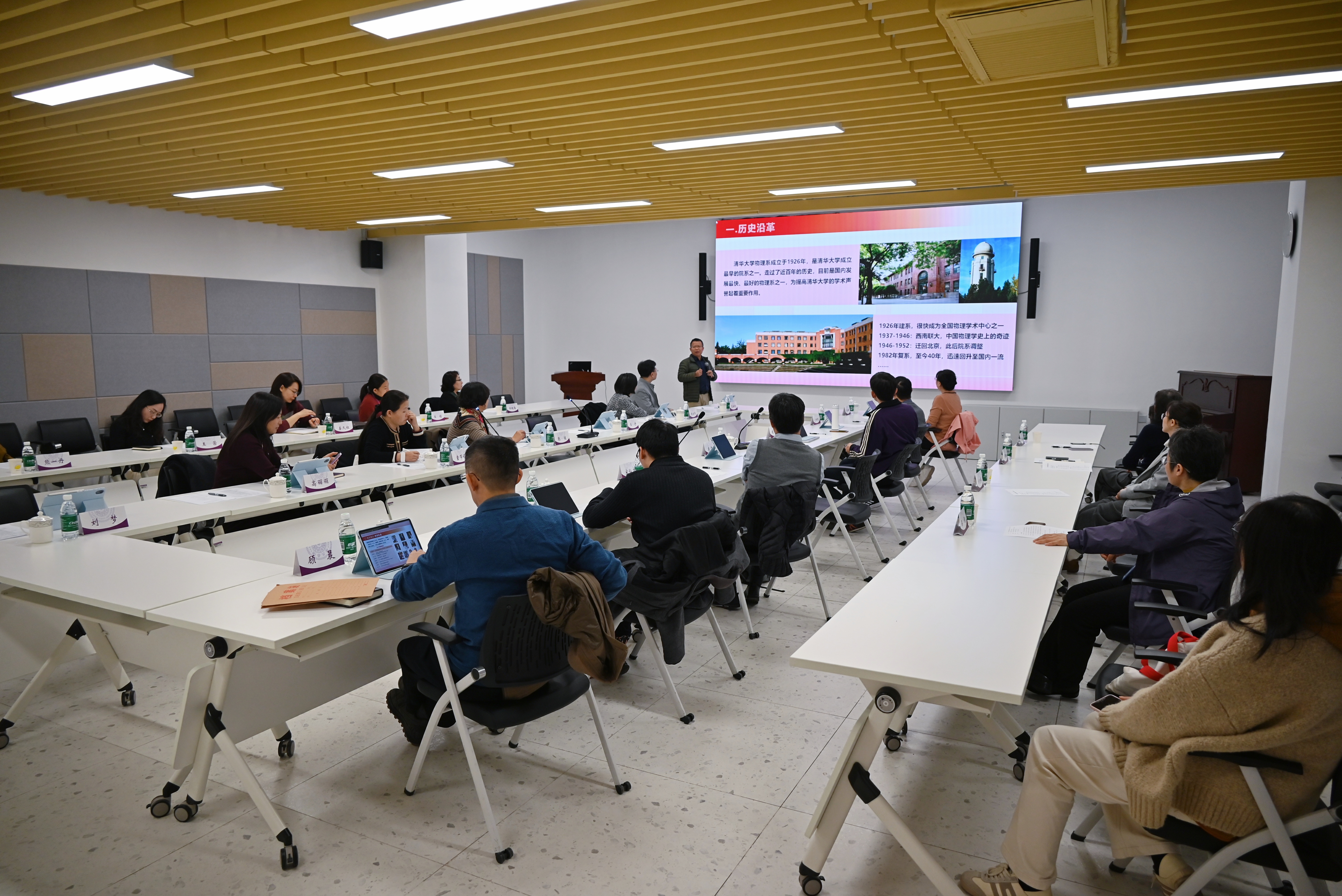 11月12日下午,物理系教职工之家验收会议在物理楼W105会议室举行。校工会常务副主席张佐、副主席王丹、校工会组织部部长高丽丽等学校验收组成员,物理系党委书记肖志刚、工会委员、工会各小组组长、教师代表等20余人参加活动。会议由物理系党委副书记、工会主席宋灿立主持。