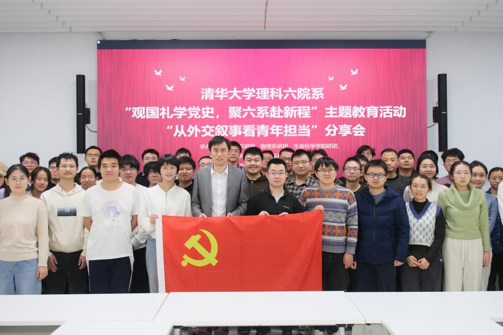 11月29日,物理系粒子物理核物理天体物理所教师党支部联合物理系、化学系、地学系、数学系、生命科院、求真书院六院系研团总支举办“观国礼学党史,聚六系赴新程”主题教育活动,来自六院系的百余名师生共同参与。物理系研工组组长、粒子物理核物理天体物理所党支部书记胡震,求真书院研工组组长李宏杰出席活动。本次活动通过沉浸式参观与专题分享相结合的形式,引导理科研究生在重温党的外交历程中坚定理想信念,明晰时代责任。