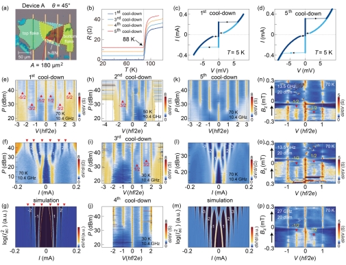 然而,物理系团队与合作者此前已发现一些与该新理论不符的实验现象。为了更深入检验拓扑超导,团队设计搭建了新的实验装置,细致开展了转角结中交流约瑟夫森效应的研究。经过一年多在扩大的参数空间的探索,团队不仅复现了哈佛研究组在单一温度观测到的半整数台阶,而且捕捉到了该现象随热循环的亚稳特性。利用磁场或电流,研究团队还在仅有整数夏皮诺台阶的样品中诱导出了半整数以及其它分数台阶。通过补齐这些此前缺失的信息,研究团队指出半整数台阶与铜氧化物中磁通钉扎有密切联系,并非拓扑超导的充分必要证据。