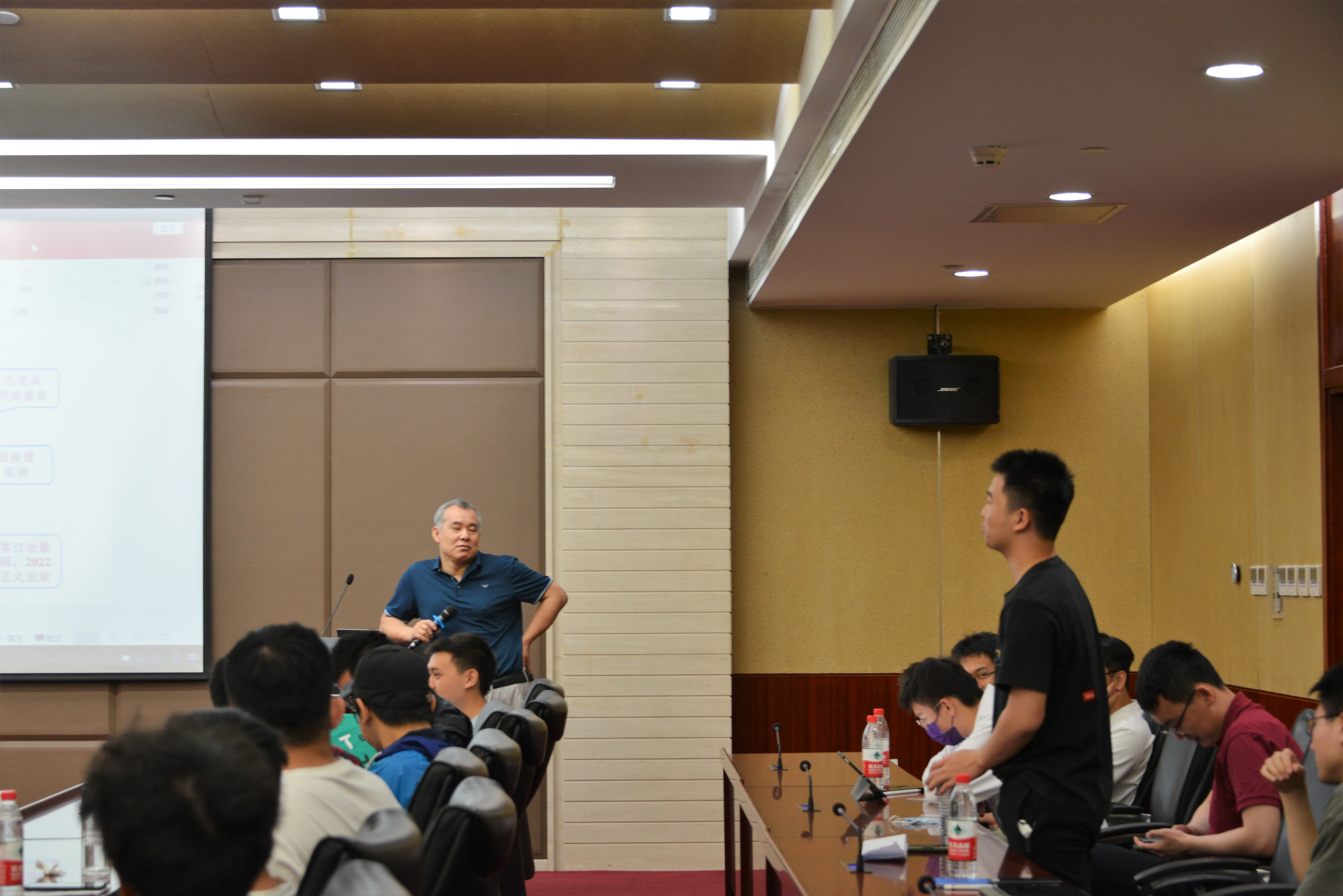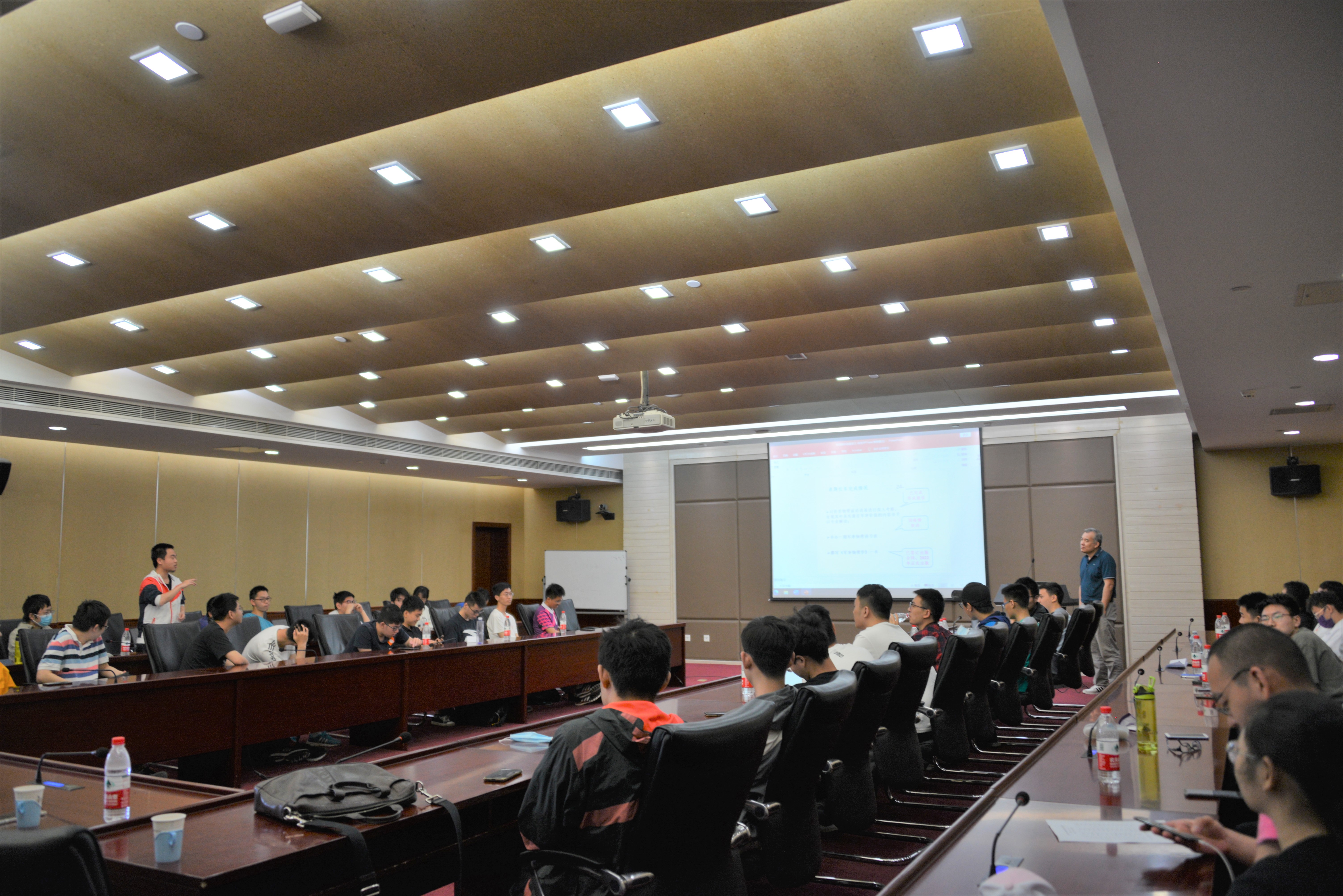 欢迎仪式结束后,物理所研究生部的汪老师向师生们介绍了物理所的基本情况,之后同学们听取了曹则贤研究员的学术报告。曹老师以一系列物理大师对读书的痴迷和探索未知世界的执着,鼓励青年学生勤奋学习,多读书、读好书,以做一个读书人为自豪。在讨论环节,同学们踊跃提问,曹老师的回答睿智幽默,会场不时爆发出欢笑声和掌声。