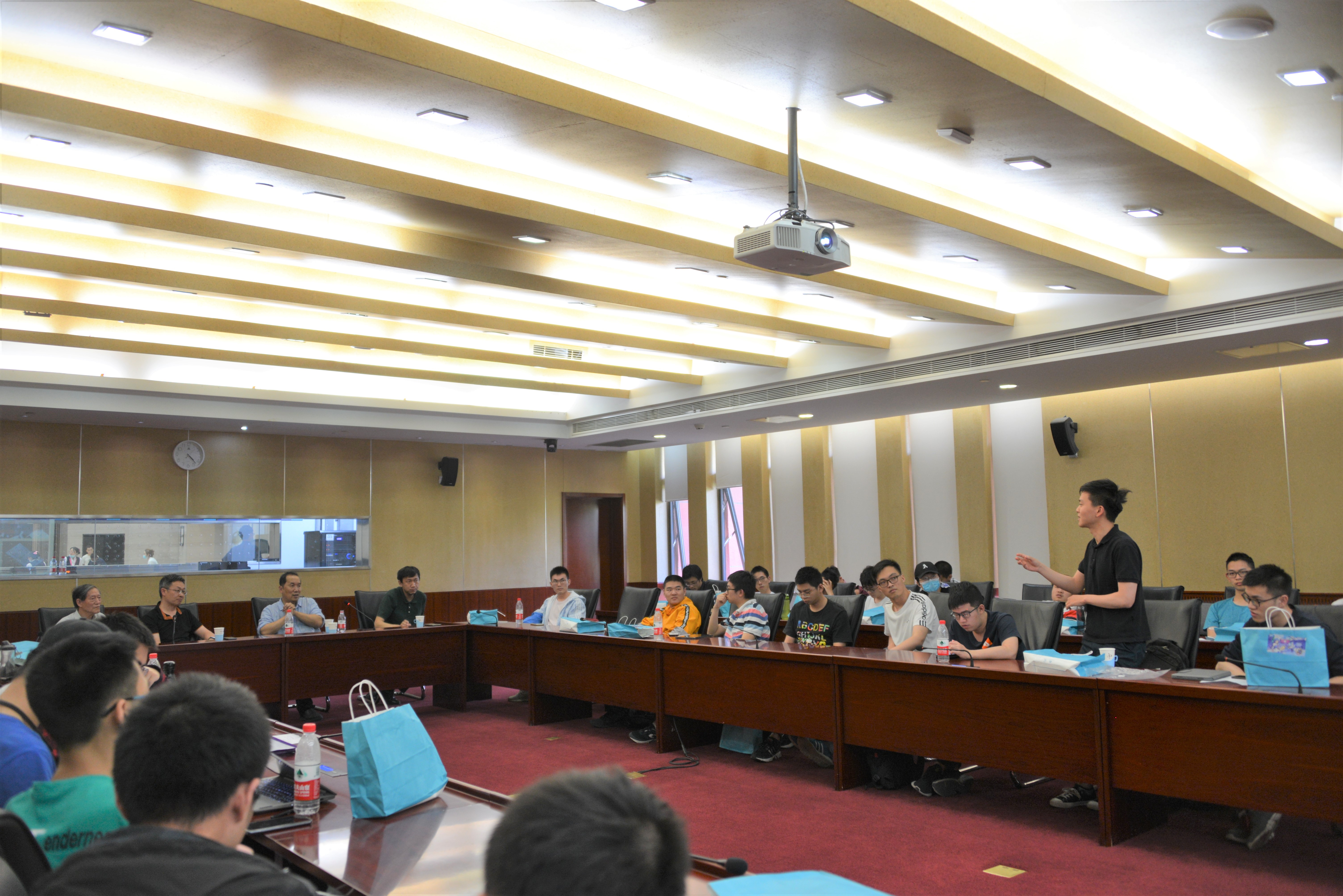 参观学习的最后一个环节是听取第二个学术报告并座谈。报告人梁文杰研究员是我系96届校友(Harvard博士,Berkeley博士后),报告内容是非常前沿的单分子晶体管和纳米器件研究。梁老师的报告高屋建瓴、深入浅出,把一个很前沿的研究方向的物理和关键技术向学弟学妹们细致讲解,同学们也听得津津有味。讨论时好几位同学提出了一些有深度的问题,并受到了梁老师的热情鼓励。