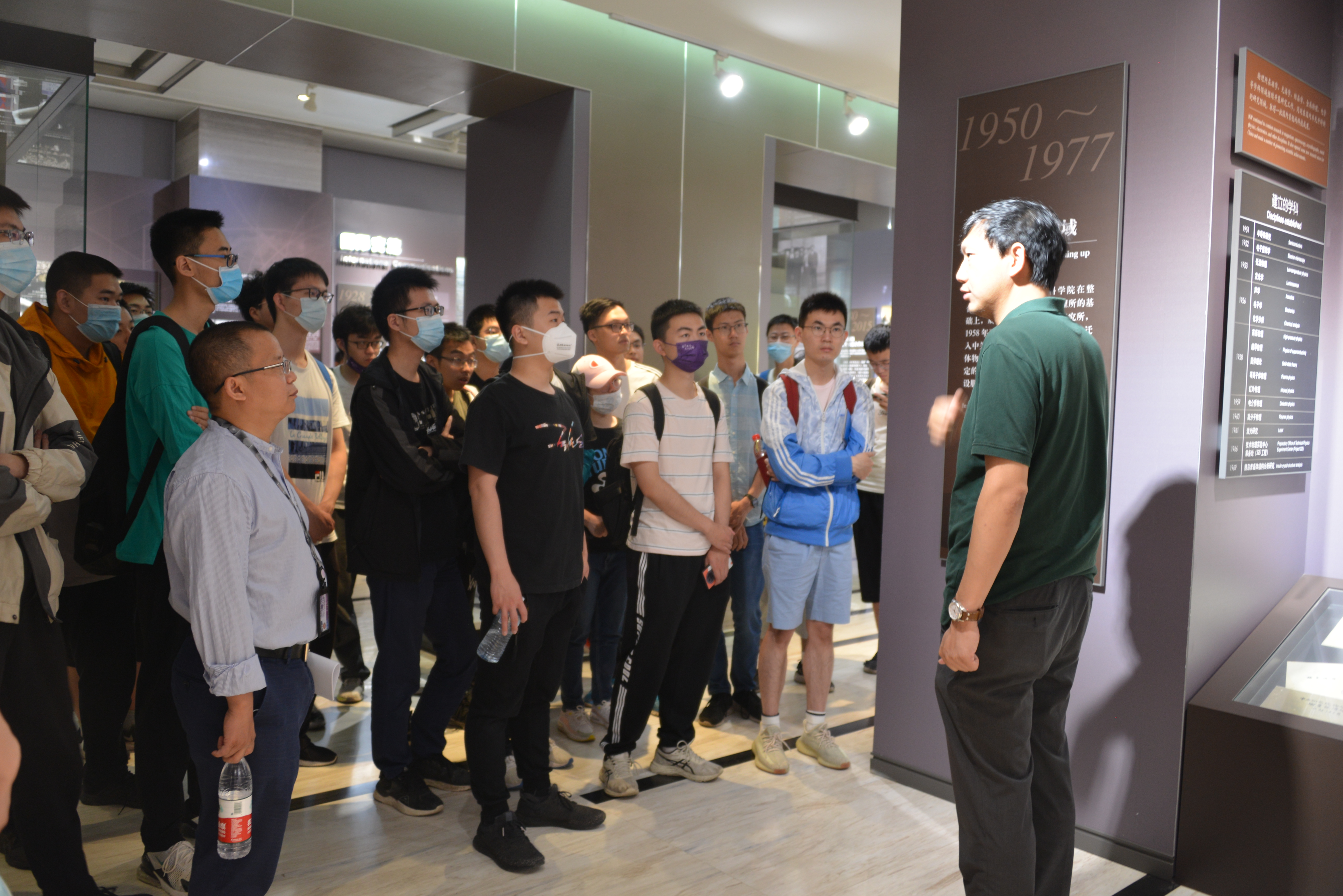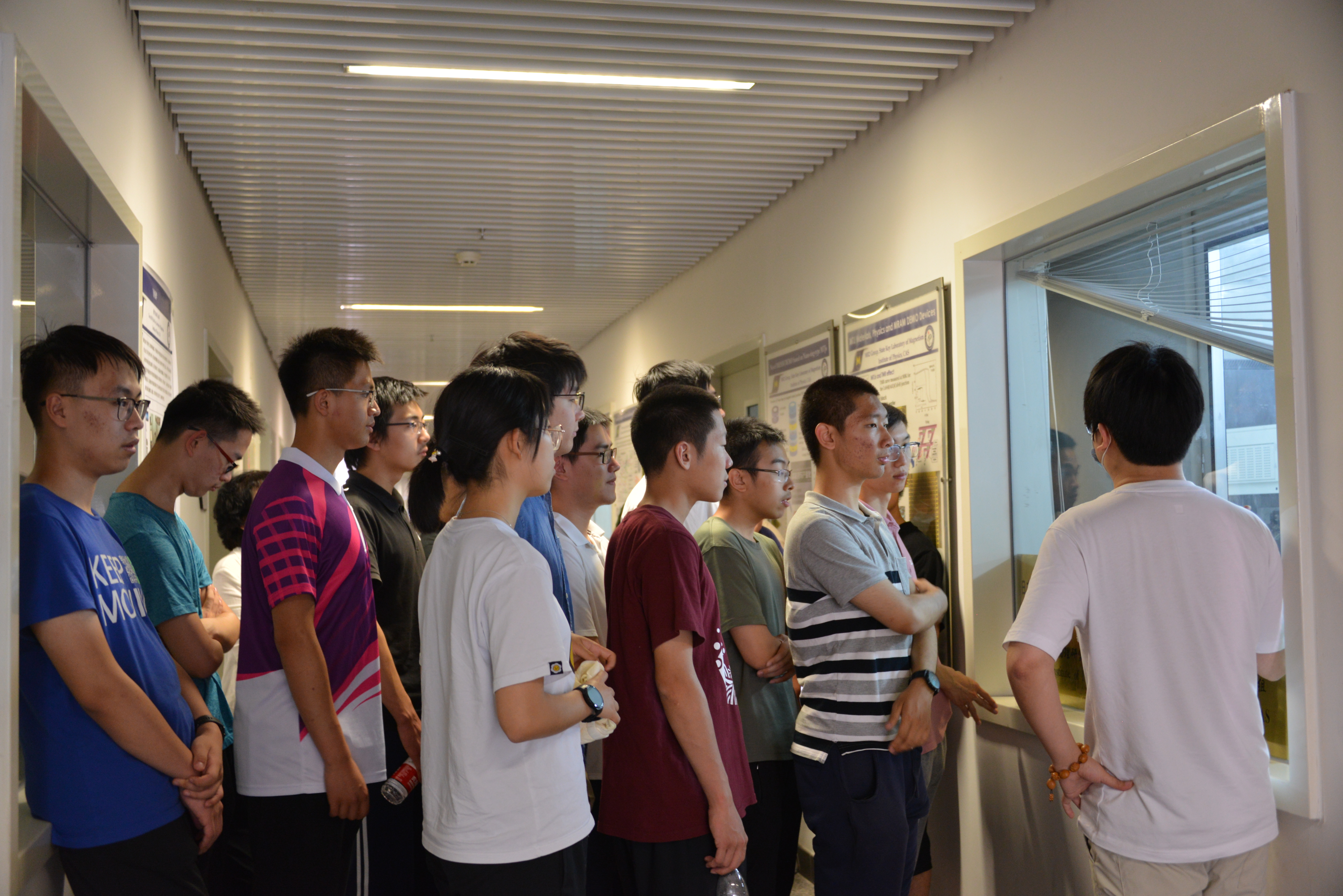 学堂班师生上午9点到达物理所M楼时,受到物理所研究生部成蒙处长等几位老师的热情欢迎,大家在大厅合影后,随即参观了物理所史展,成处长亲自担任讲解。参观中同学们为我国老一辈物理学家在新中国刚刚诞生时纷纷归国,培养人才,艰苦奋斗建设国家基础研基地的精神深受感动,为物理所取得的辉煌成就深感钦佩。