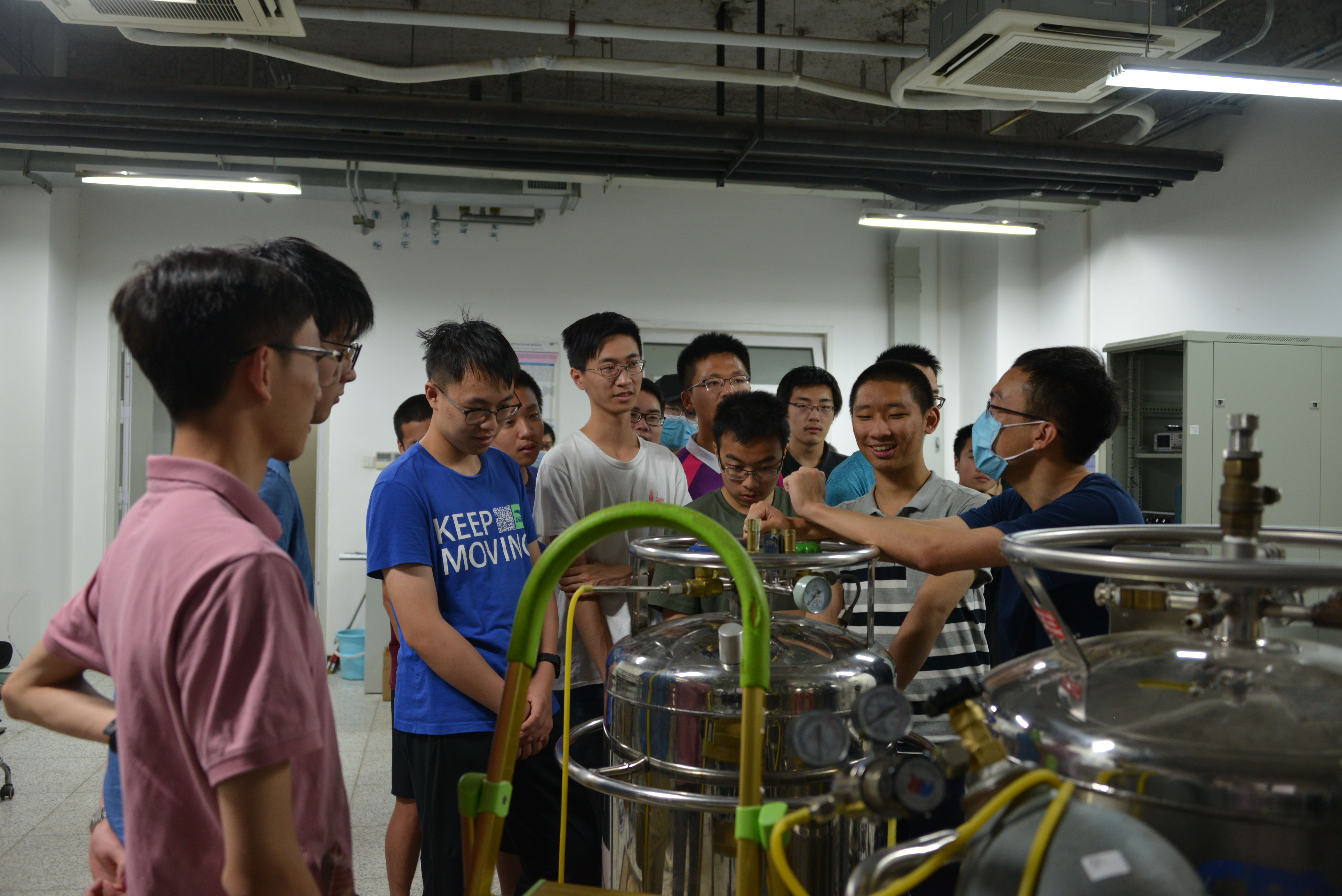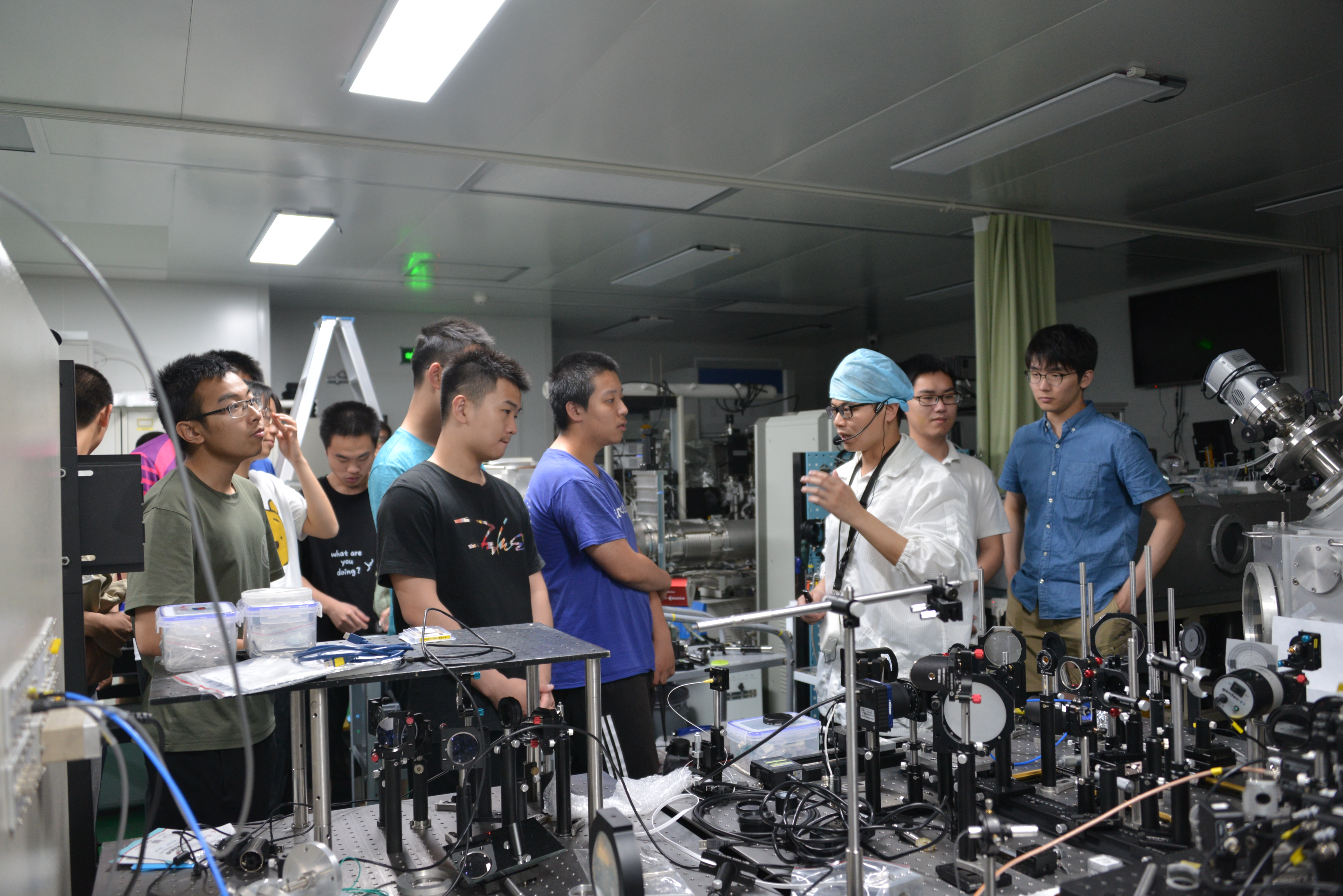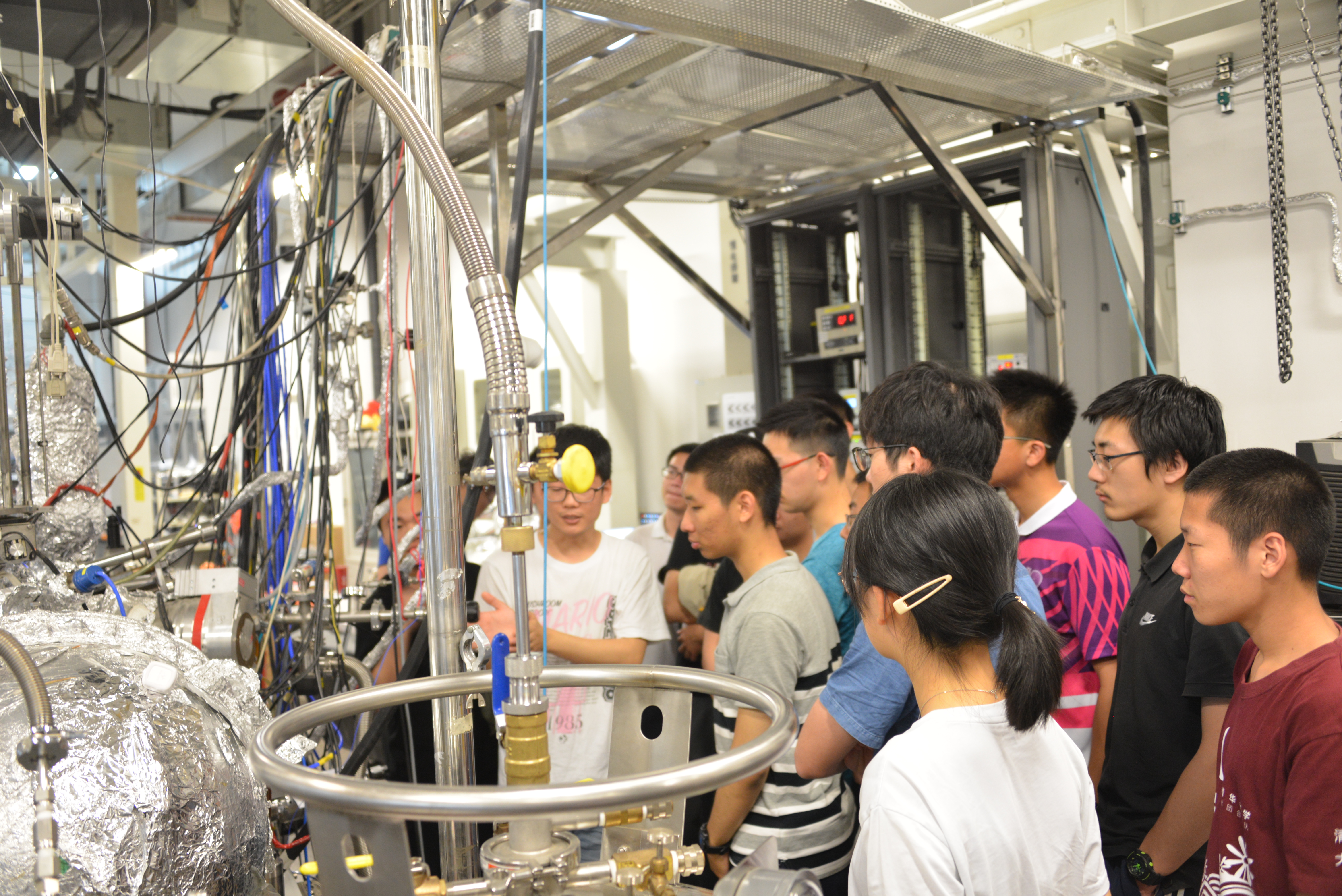 下午的重头戏是参观实验室。物理所安排同学们分组参观了分属国家重点实验室和中科院重点实验室的纳米、磁学、超导和光物理四个实验室。同学们很快就被实验室的仪器设备和研究氛围所引,参观专注,提问踊跃。各实验室负责讲解的研究生也非常愿意与同学们交流,详细解释实验的关键点,热心回答问题,常常后一个参观小组到了才不得不结束与前一组同学的讨论。