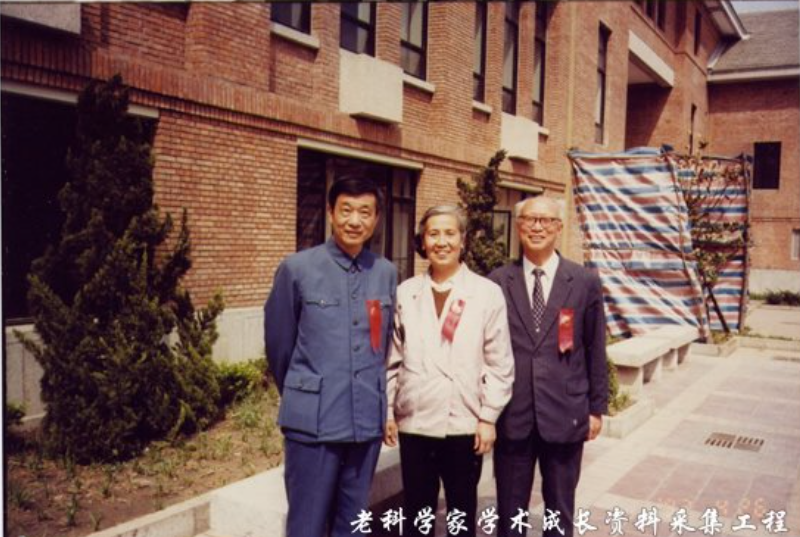 1992年毕业40周年,赵文津院士(左3)和两位入党介绍人唐孝威院士(左1)、齐卉荃(左2)合影。